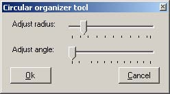 This tool is used to arrange the selected entities in a circular fashion. Use the two slider controls to modify the radius as well as angle of the entities.