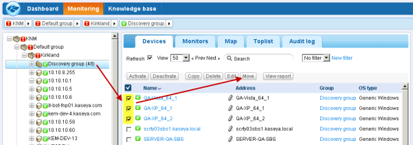 Note: Network discovery requires moving discovered devices out of any Discovery group