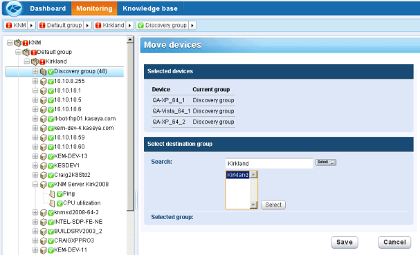 Let's take a look at how the navigation tree can be reorganized by moving one branch of the navigation tree to the next. We'll use the example of moving discovered devices out of a Discovery group