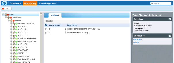 Actions work slightly different for monitors assigned to a gateway. The following actions are always executed on the server: