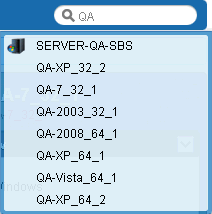 A Search edit box displays in the upper right hand corner. Enter a string to search the monitor tree for all group, gateway and asset nodes that match the string entered. Do not press the Enter key. Just wait for the list of nodes to be displayed below the edit box, then select one to display that node.