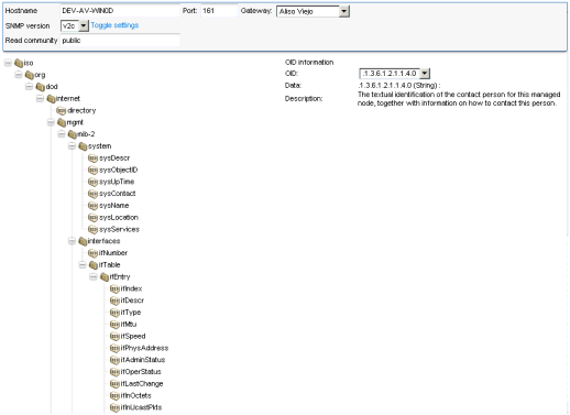 The same tree displays at all times, based on the MIB files installed on the server. Below is an example of the MIB browser dialog.