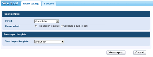 Use the Selection tab on the View report page to override the default selection of gateway or group, assets and monitors selected for either type of report.