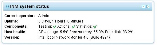The widget displays general system status such as uptime and version information.
