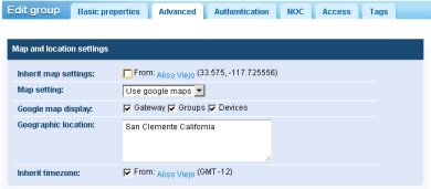 Map settings are typically configured on the Advanced tab of a node. Network Monitor is integrated with the Google Maps API. This means you can use either the name of a location or GPS coordinates using decimal notation, such as -33.469048,-70.642007, to identify the location of any node.