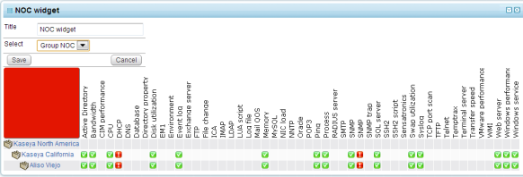 Network Operation Center (NOC) widgets are compact, full-screen information views that display the status of a collection of networks and assets. They are normally displayed on dedicated monitors.