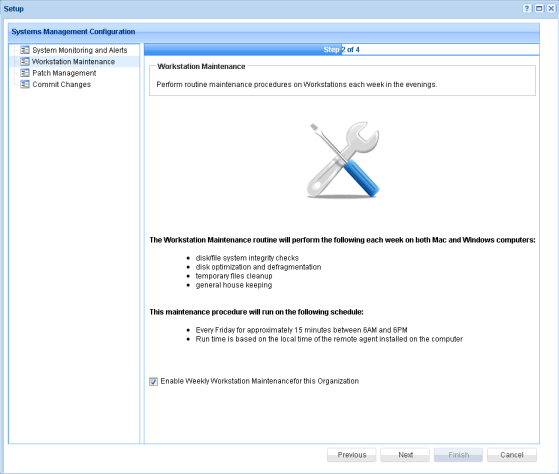 Enable Weekly Workstation Maintenance – If checked, weekly workstation maintenance routines are run once a week, from Monday through Friday between 6 PM to 6 AM. Applies to Windows and Macintosh workstations only. Does not apply to Linux. This includes: