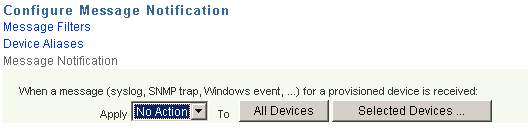 You can trigger notifications for incoming messages and traps by assigning action profiles to them. You can select whether to trigger an action profile for all devices, for selected devices or no devices.