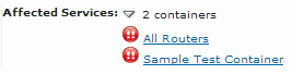 Clicking a container link in the Affected Services field opens up the Container Status Summary page and allows viewing the contents of the container.
