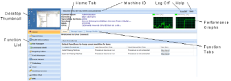 A menu of tabbed property sheet provides access to various categories of information about the managed machine.